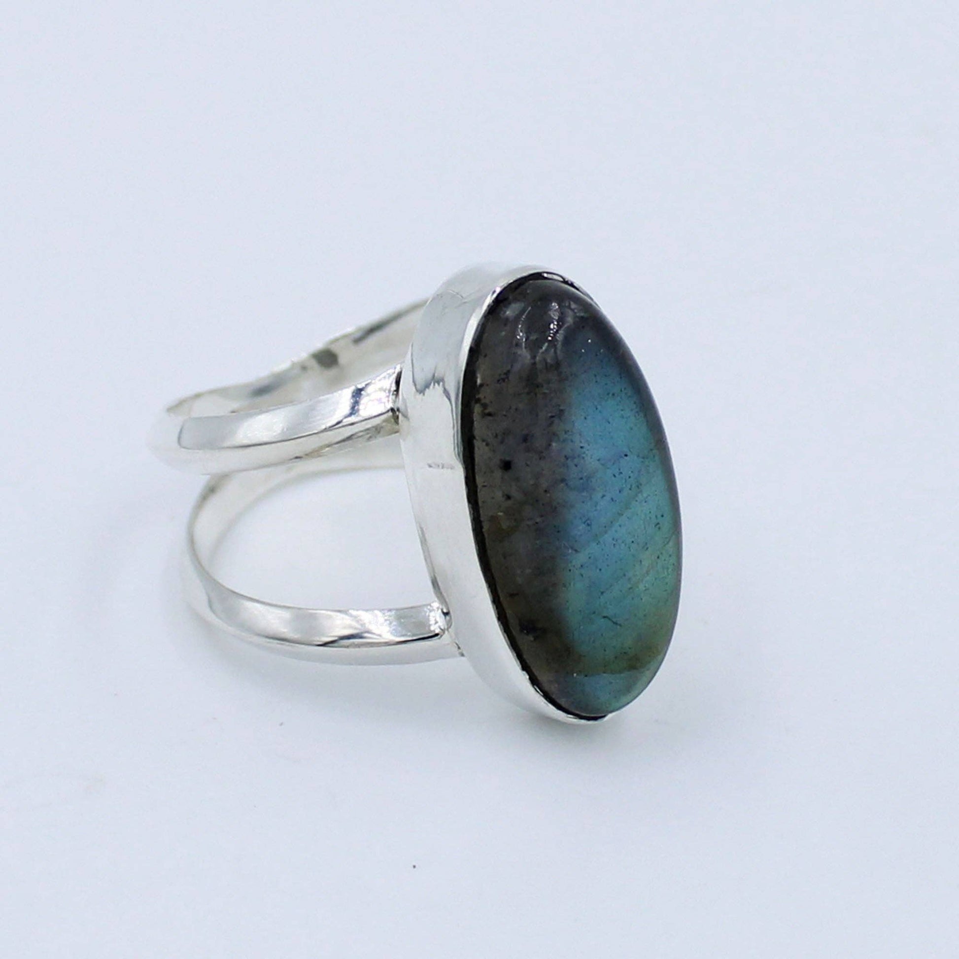 Labradorite Oval 925 Sterling Silver Ring: 9